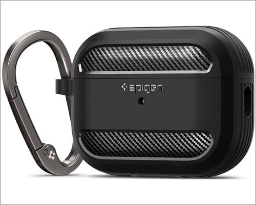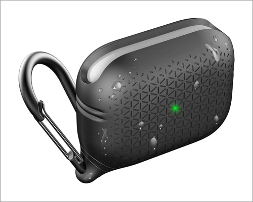 Podobała mi się dodatkowa, miękka w dotyku powłoka, która zapewnia doskonałe wyczucie dłoni. Dwuczęściowa konstrukcja jest łatwa do otwarcia i zapobiega kolidowaniu z zawiasem AirPods Pro. Poza tym obudowa jest kompaktowa i kompatybilna z płynnym ładowaniem bezprzewodowym. Możesz także użyć wbudowanego karabińczyka jako punktu mocowania do torby podczas podróży.