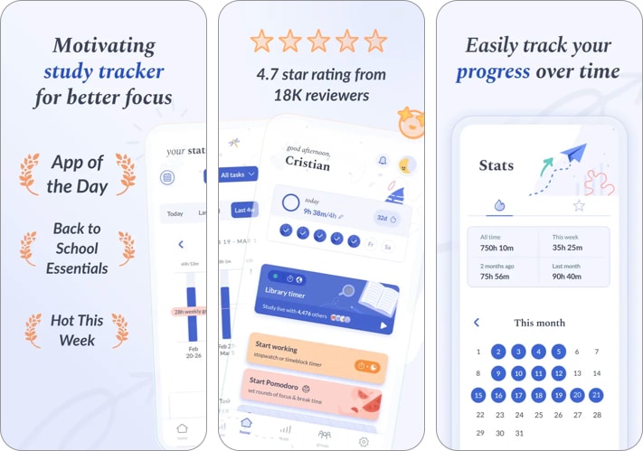 Przeglądaj statystyki skupienia i nauki, twórz ćwiczenia i znaczniki oraz dołącz do społeczności innych uczniów, którzy są tam, aby skoncentrować się tak jak Ty.