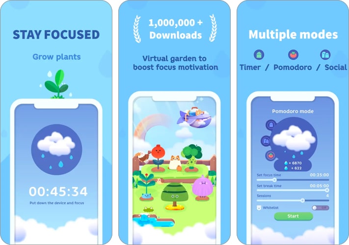Jeśli podoba Ci się pomysł uprawy i pielęgnowania natury podczas skupienia, Focus Plant: Pomodoro Timer to kolejna aplikacja, którą warto wypróbować. Ten idzie nieco dalej w kwestii grywalizacji. Stwórz kolorowy świat, zdobywając krople deszczu podczas koncentracji. Następnie podlej swoje warzywa, posadź nowe i ciesz się magiczną sceną, gdy już utrzymasz koncentrację i wykonasz swoje zadania.