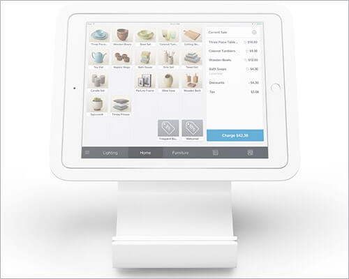 Stojak POS Squareup na iPada to jeden z najprostszych stojaków POS, o jaki możesz poprosić. Jest to również jeden z najtańszych modeli – kosztuje zaledwie 99 dolarów. Nie jest zbudowany na zamówienie ze względu na specyfikę, ale z łatwością pasuje do większości przypadków użycia. Ponadto jest ona specyficzna dla Square, co oznacza, że do przetworzenia płatności będziesz musiał korzystać z usług Square. Jeśli tak, to jest to idealne stanowisko, na które warto się zdecydować.