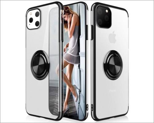 Metalowy pierścień, który może służyć jako uchwyt, może również służyć jako podpórka, która jest wygodna do strumieniowego przesyłania wideo i filmów, a także do korzystania z FaceTime, gdy masz zajęte ręce. Co więcej, antypoślizgowe linie i ergonomiczny uchwyt ułatwiają trzymanie telefonu.
