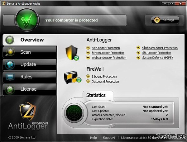 Zemana AntiLoggerszyfruje wszystkie naciśnięcia klawiszy, nic do zainstalowania na komputerze. Działa ze wszystkimi zainstalowanymi aplikacjami i tylko ta aplikacja, z której w danym momencie korzystamy, wie, co piszemy. Zemana AntiLogger Dobrą rzeczą jest to, że jest całkowiciebezpłatne narzędzie zapobiegające keyloggerom.musimy go po prostu zainstalować i zapomnieć o tym, ponieważ działa on stale w tle. Po prostu nie zastanawiaj się, jakie są sekwencje i skróty Zemana AntiLoggerCTRL + X lub klawisz ENTER.