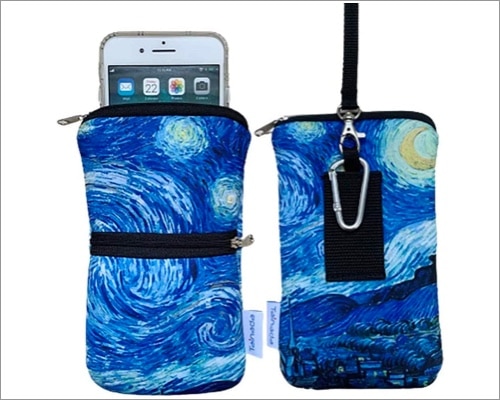 Jeśli jesteś fanem Gwieździstej nocy Van Gogha, to wodoodporne etui będzie idealne dla Twojego iPhone'a. Chroni przed kurzem, uderzeniami, zadrapaniami i wilgocią dzięki wysokiej jakości neoprenowemu materiałowi konstrukcyjnemu. Poza tym ma podwójne zamki błyskawiczne do przechowywania telefonu i jedną boczną przegrodę na karty, gotówkę, słuchawki i inne.