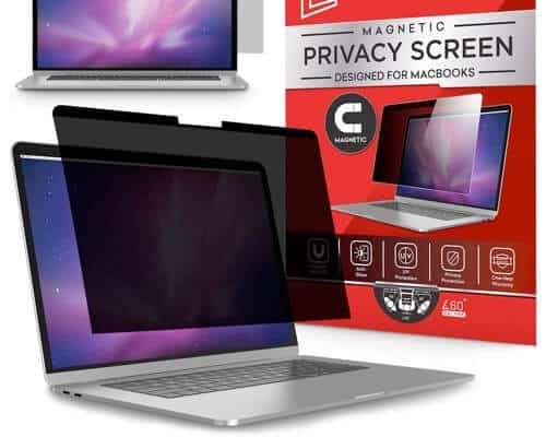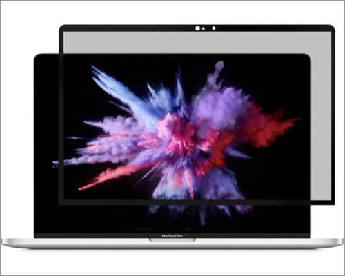 Oznaczony jako Wybór Amazona w kategorii „16-calowe zabezpieczenie ekranu MacBooka Pro”, Filmext to najbardziej lubiana przez użytkowników MacBooka Pro osłona ekranu. Oprócz ochrony ekranu, ten filtr prywatności zapewnia, że informacje z ekranu komputera Mac nie wyciekną do osób siedzących obok Ciebie. Nawet jeśli znajdziesz się zaledwie 30 stopni od komputera Mac, prawie nic nie zobaczysz na ekranie ze względu na filtr prywatności.