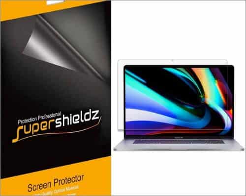 Jeśli chodzi o ochronę ekranu przed zarysowaniami, Supershieldz jest w stanie udaremnić drobne zadrapania. Poza tym folia PET radzi sobie również z usuwaniem potu i odcisków palców. Dzięki tym funkcjom cena 9,99 USD za trzy opakowania sprawia, że jest to jeden z najtańszych ochraniaczy ekranu dla 16-calowego MacBooka Pro.