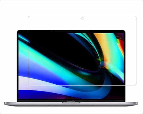 Kolejna z najwyższej półki osłona ekranu dla 16-calowego MacBooka Pro, która przykuła moją uwagę. I zgadnij co, uważam, że jest on w pełni wyposażony, aby zapewnić odpowiednią opiekę wyświetlaczowi Retina, zapewniając jednocześnie przezroczystość w wysokiej rozdzielczości. Dzięki grubości 0,26 mm jest to jeden z najcieńszych ochraniaczy ekranu, ale z łatwością jest odporny na zarysowania.