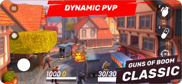 Będziesz musiał użyć swojej przebiegłości i strategii, aby rywalizować na wielu mapach z graczami z całego świata. Guns of Boom może nie zapewnia realistycznej grafiki, ale jest przyjemna i trudna.