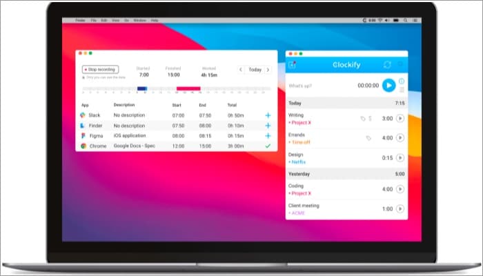 Desk Time to aplikacja do śledzenia czasu wolnego na komputerze Mac, telefonie iPhone lub iPadzie. Aplikacja jest wszechstronna i funkcjonalna. Pulpit aplikacji jest kompleksowy – umożliwia efektywne śledzenie czasu w czasie rzeczywistym. Możesz także śledzić godziny wznowienia i zamknięcia, tak jak w biurze. Jednak jednym problemem, który zniechęca potencjalnych użytkowników, jest to, że obsługuje tylko komputery Mac z chipem M1 i systemem macOS 11.0 lub nowszym.
