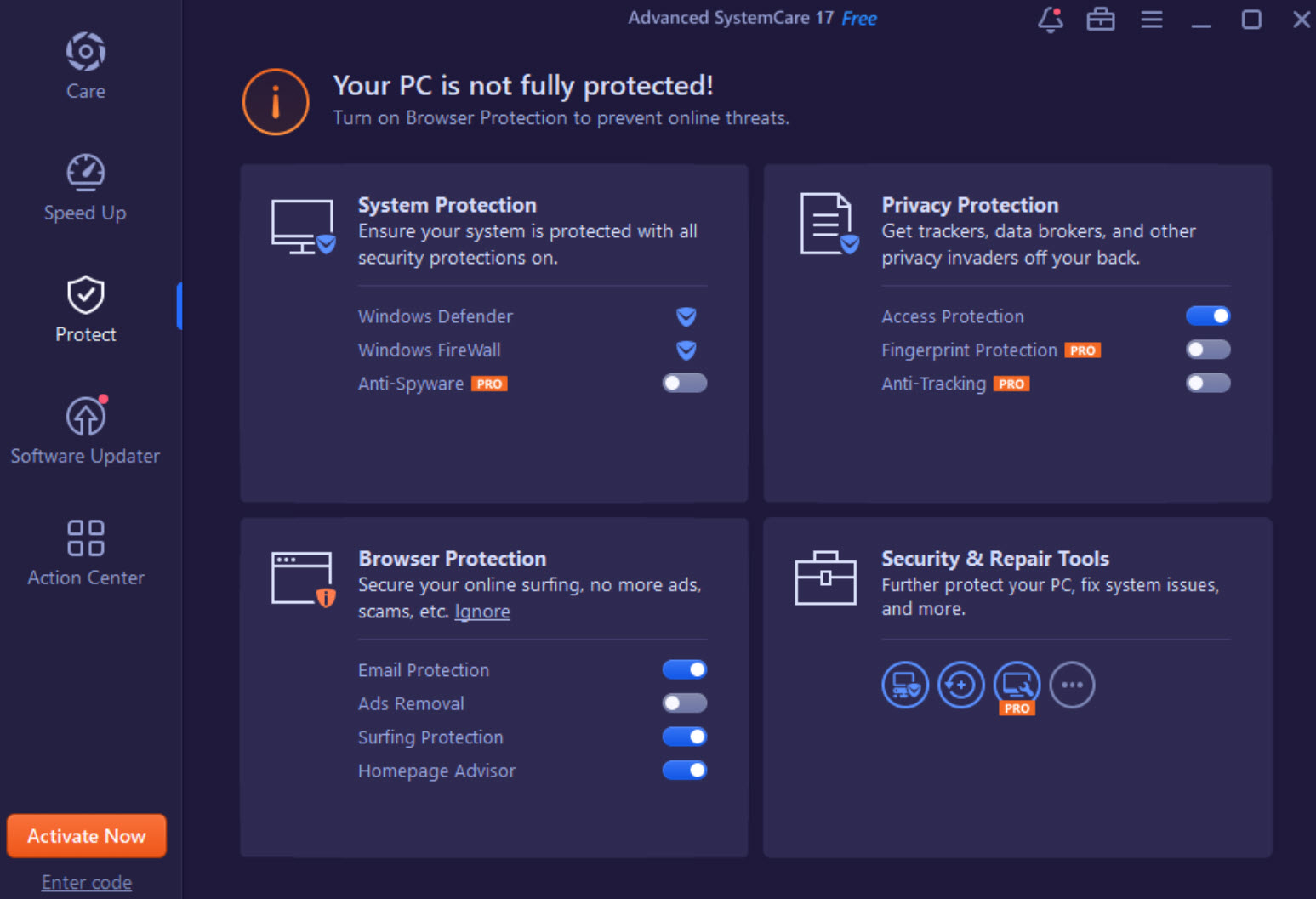 Advanced SystemCare 17 Pro oferuje niesamowite funkcje ochrony, które chronią Twój komputer przed zagrożeniami.
