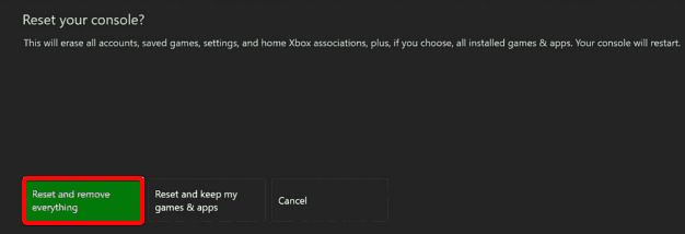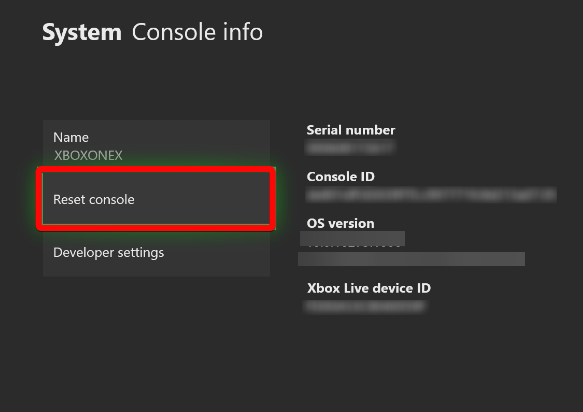 - Następnie naciśnij opcję Resetuj konsolę po lewej stronie.