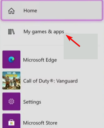 - Naciśnij przycisk przewodnika na swoim urządzeniuXboxkontrolerze, aby otworzyć menu, i wybierz Moje gry i aplikacje po lewej stronie.