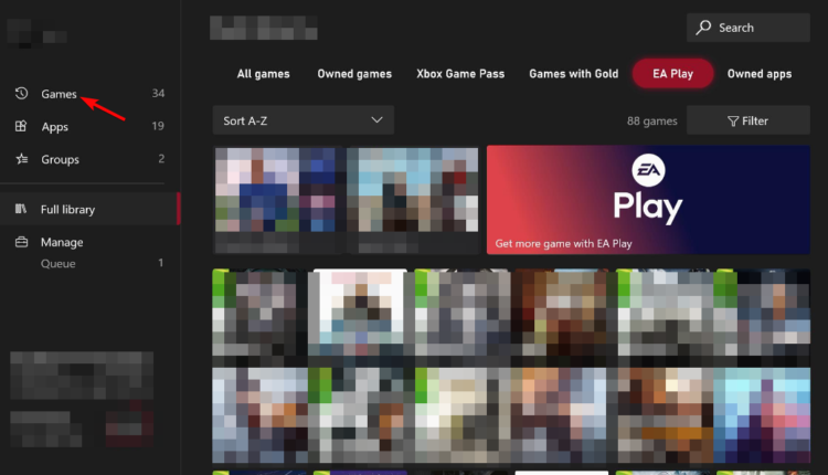 - Po odinstalowaniu gry przejdź do biblioteki Xbox na ekranie głównym. Tutaj, przejdź doWszystkie posiadane grysekcję i kliknij, aby ponownie pobrać Call of Duty: Vanguard.