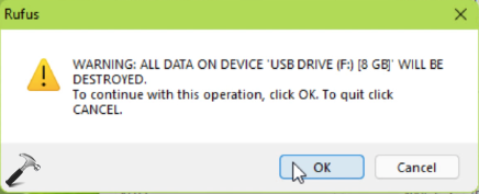 4.TrzaskSTARTaby rozpocząć tworzenie rozruchowego nośnika USB. Następnie pojawi się ostrzeżenie, że wszystkie dane na USB zostaną sformatowane. Jeśli wykonałeś już kopię zapasową swoich danych, kliknijOKkontynuować.