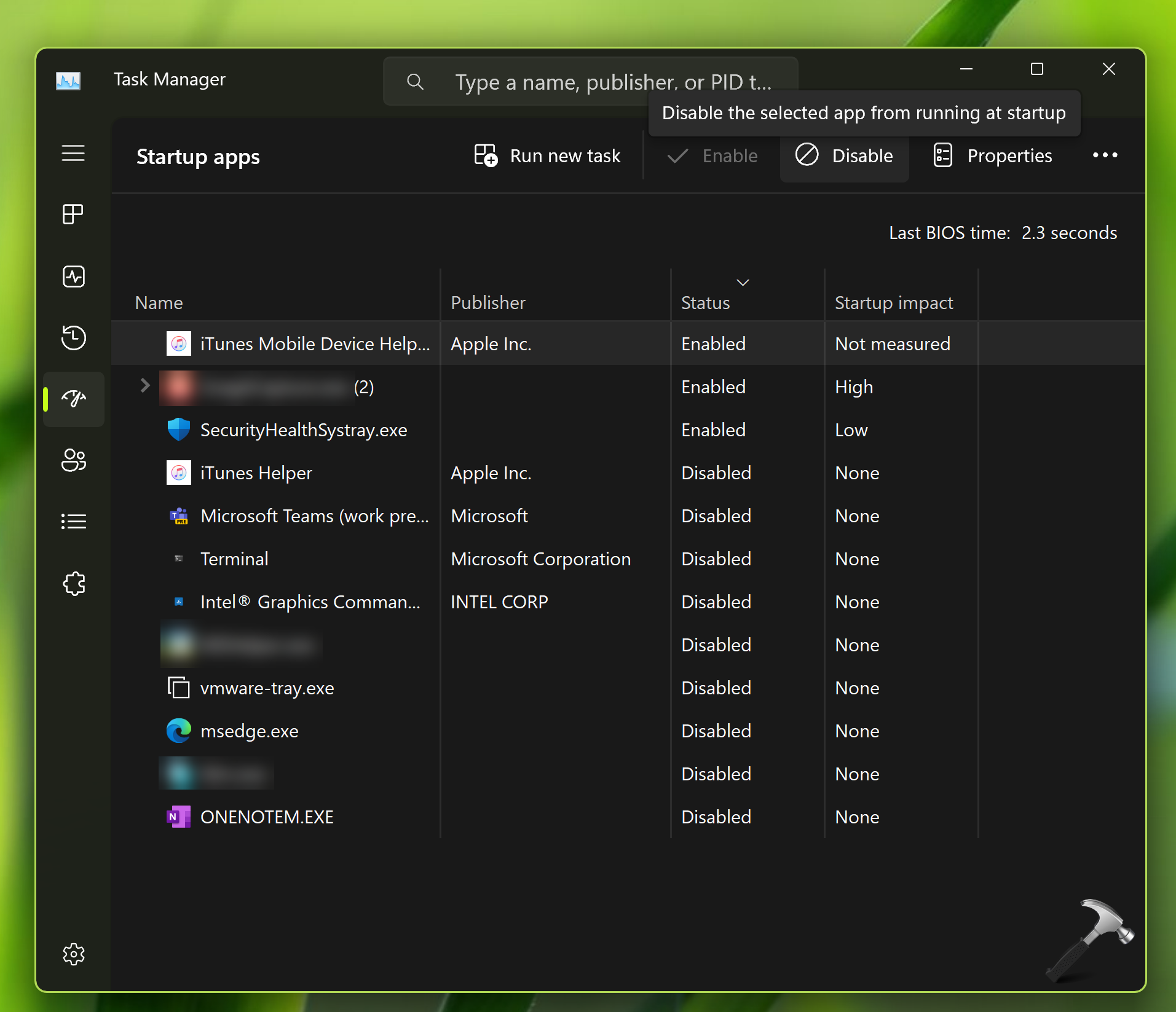 6. Wyłącz wszystkie wymienione tam elementy innych firm i uruchom ponownie komputer.