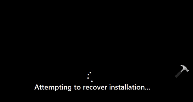 8.Po wykonaniu poprzedniego kroku system zostanie uruchomiony ponownie. Następnie przez chwilę zobaczysz ekran Próba odzyskania instalacji.