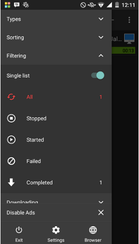 - Filtrowanie procesu pobierania. ADM, aby zobaczyć, możesz to zmienić, korzystając z udostępnionej funkcji filtrowania. Gdy zmienisz filtr wyświetlania na pojedynczą listę, automatycznie wyświetli się Twój domowy ADM, który zmieni się, przejdziesz do dwóch zakładek, ale na jednej liście. Tych filtrów możesz użyć do monitorowania, gdzie pliki są nadal w trakcie pobierania, czy pobieranie zostało już zakończone, aż do nieudanego pobierania.