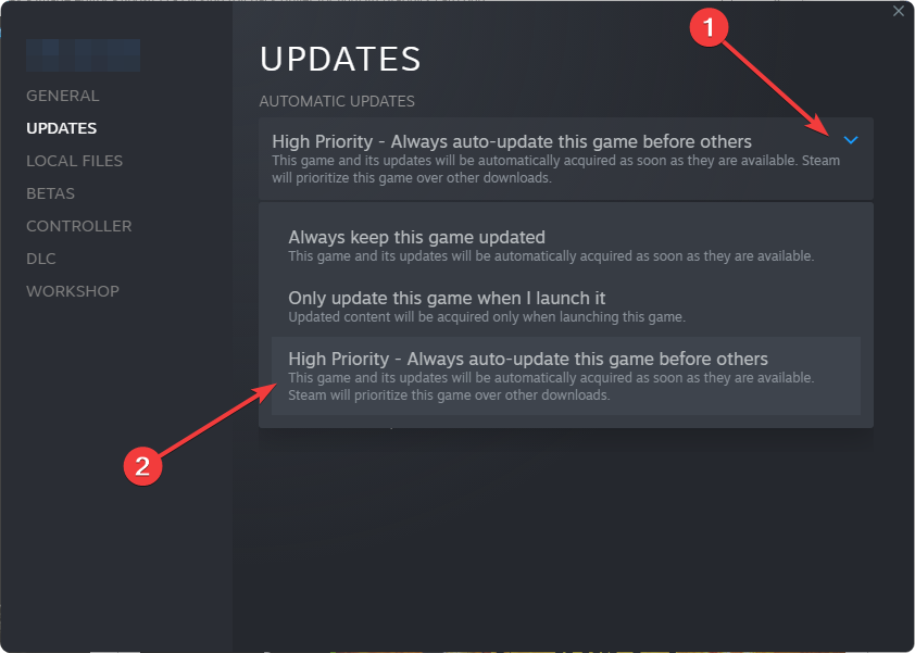 - WybieraćAktualizacjei wybierzWysoki priorytet – zawsze aktualizuj tę grę automatycznie przed innymi