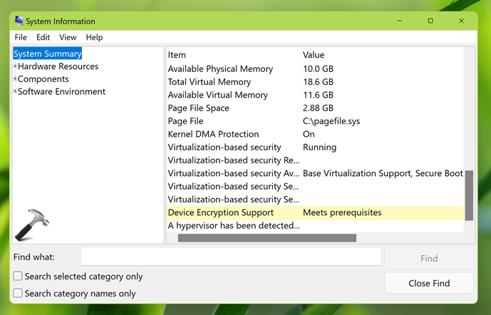 W dzisiejszych czasach większość urządzeń ma obsługę funkcji szyfrowania urządzeń. Aby sprawdzić, czy jest obsługiwany na twoim urządzeniu, musisz przejść doMenu Start> Wszystkie aplikacje> Narzędzia systemu Windows. Kliknij prawym przyciskiem myszyInformacje o systemiei wybierz Uruchom jako administrator. Po otwarciu okna informacji o systemie, po podsumowaniu systemu, przewiń w dół i zlokalizujObsługa szyfrowania urządzeń. Jeśli jest to wartośćSpełnia warunki wstępneNastępnie możesz włączyć szyfrowanie urządzeń w systemie. W przeciwnym razie nie możesz go włączyć, ponieważ funkcja będzie całkowicie brakuje.