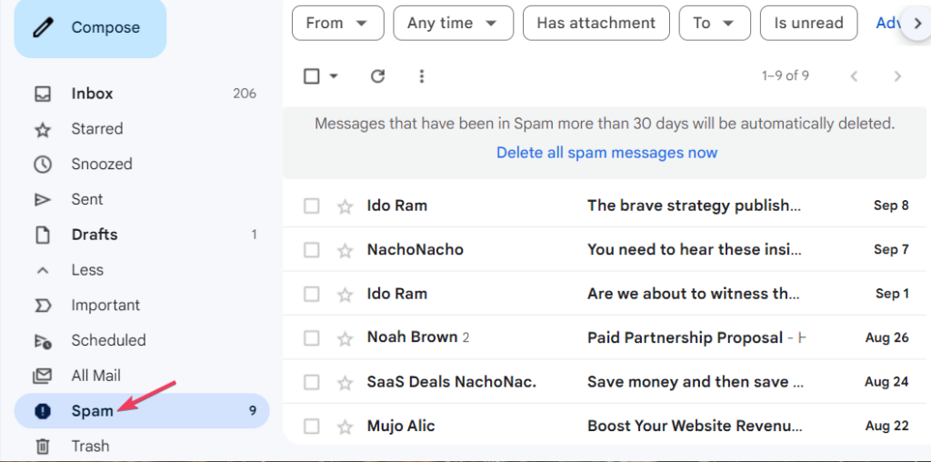 2. Zajrzyj do folderu spamu na swoim koncie e-mail