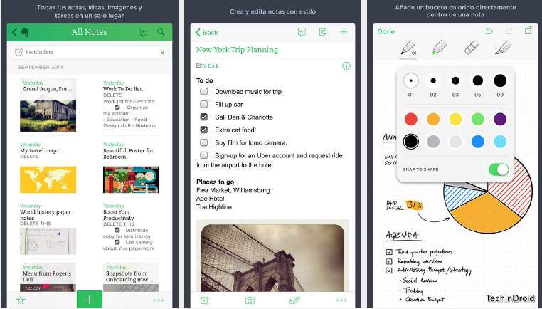 Aplikacja iOS Notes jest całkiem przyzwoita i to dzięki iCloud. Możemy je zsynchronizować na różnych urządzeniach. Evernote ulepsza to jeszcze bardziej i oferuje nam możliwość tworzenia (i synchronizowania) notatek w postaci zwykłego tekstu. Pozwala nam to również robić z innymi typami plików i dołączać do naszych notatek zdjęcia, muzykę i inne pliki.