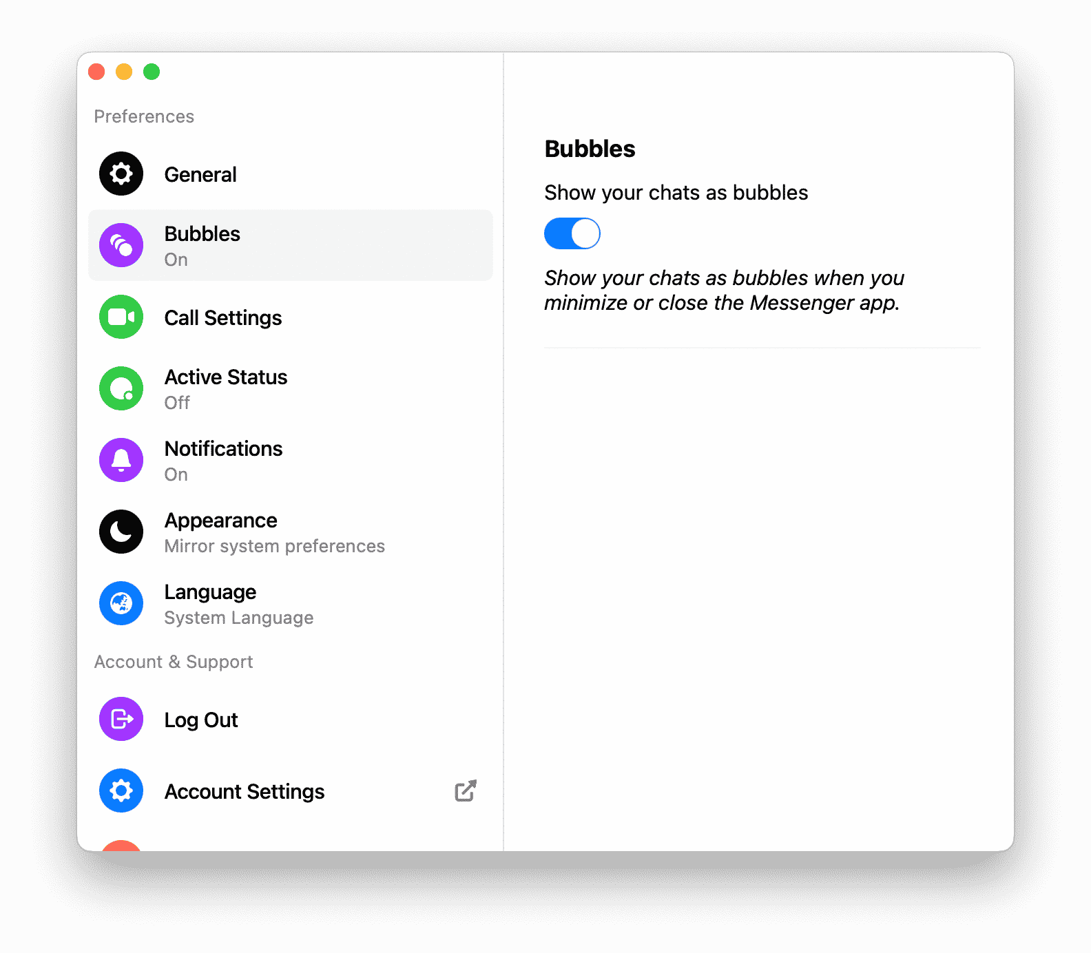 Zaktualizowana wersja programu Facebook Messenger dla komputerów Mac zawiera także nową funkcję dymków, która umieszcza Twoje ostatnie kontakty w prawym dolnym rogu komputera Mac. Kliknięcie dowolnego z tych kontaktów natychmiast otwiera okno czatu, podobnie jak to działa na stronie Facebooka. Możesz także rozpoczynać czaty z nowymi kontaktami za pomocą ikony w tym interfejsie użytkownika. Bąbelki pojawiają się tylko wtedy, gdy Messenger jest zminimalizowany i mogą zostać automatycznie zwinięte.
