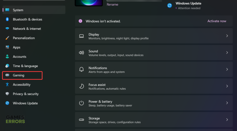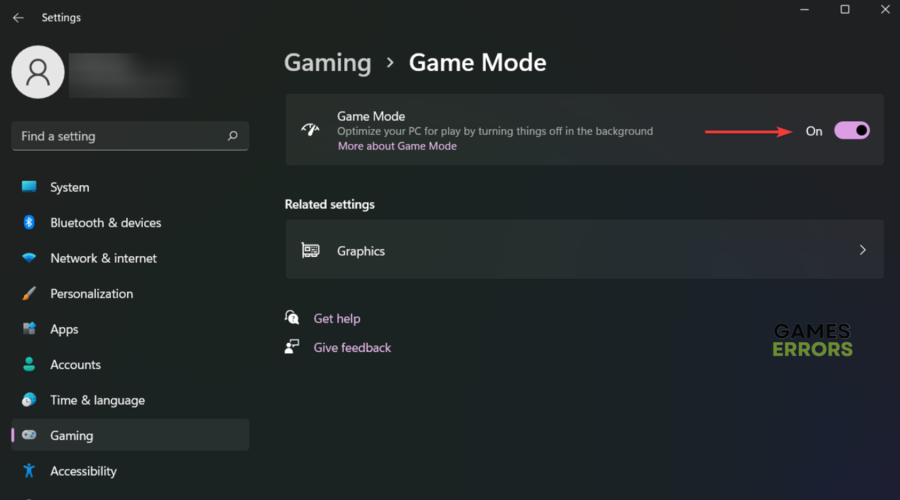 4. Upewnij się, żeTryb gryprzełącznik jest włączony.