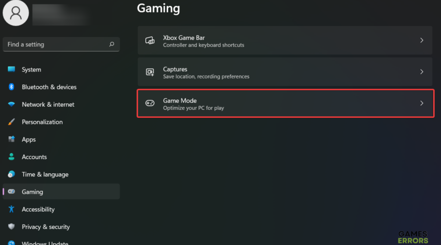 3. Teraz spójrz na prawą stronę okna i wybierzTryb gry.
