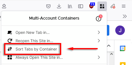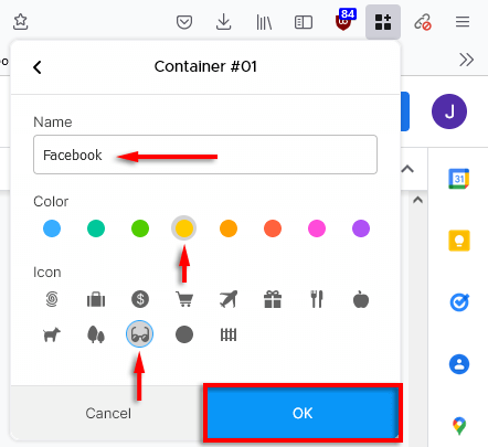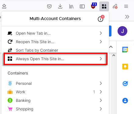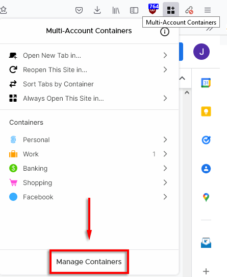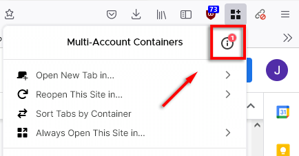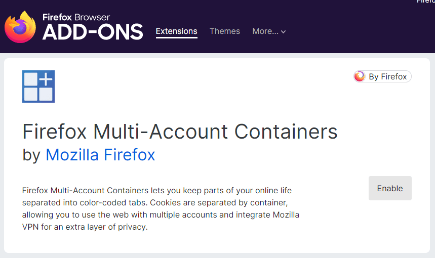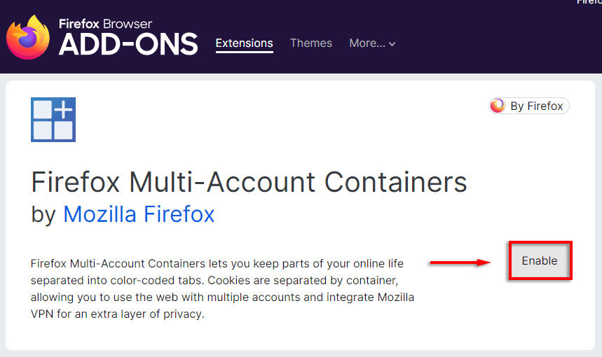 - OtwarteFirefoksai udaj się doKontenery wielokontowe Firefoksastrona rozszerzenia.