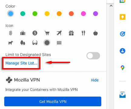 - Połącz kontenery wielokontowe z Mozilla VPN.Mozilla VPN jest teraz dostępna w niektórych krajach i integruje się z kontenerami wielokontowymi, aby dodać dodatkową warstwę bezpieczeństwa do poszczególnych kart. Oznacza to, że możesz ominąć geoblokady, aby uzyskać dostęp do swojego banku (i innych stron internetowych) będąc za granicą.