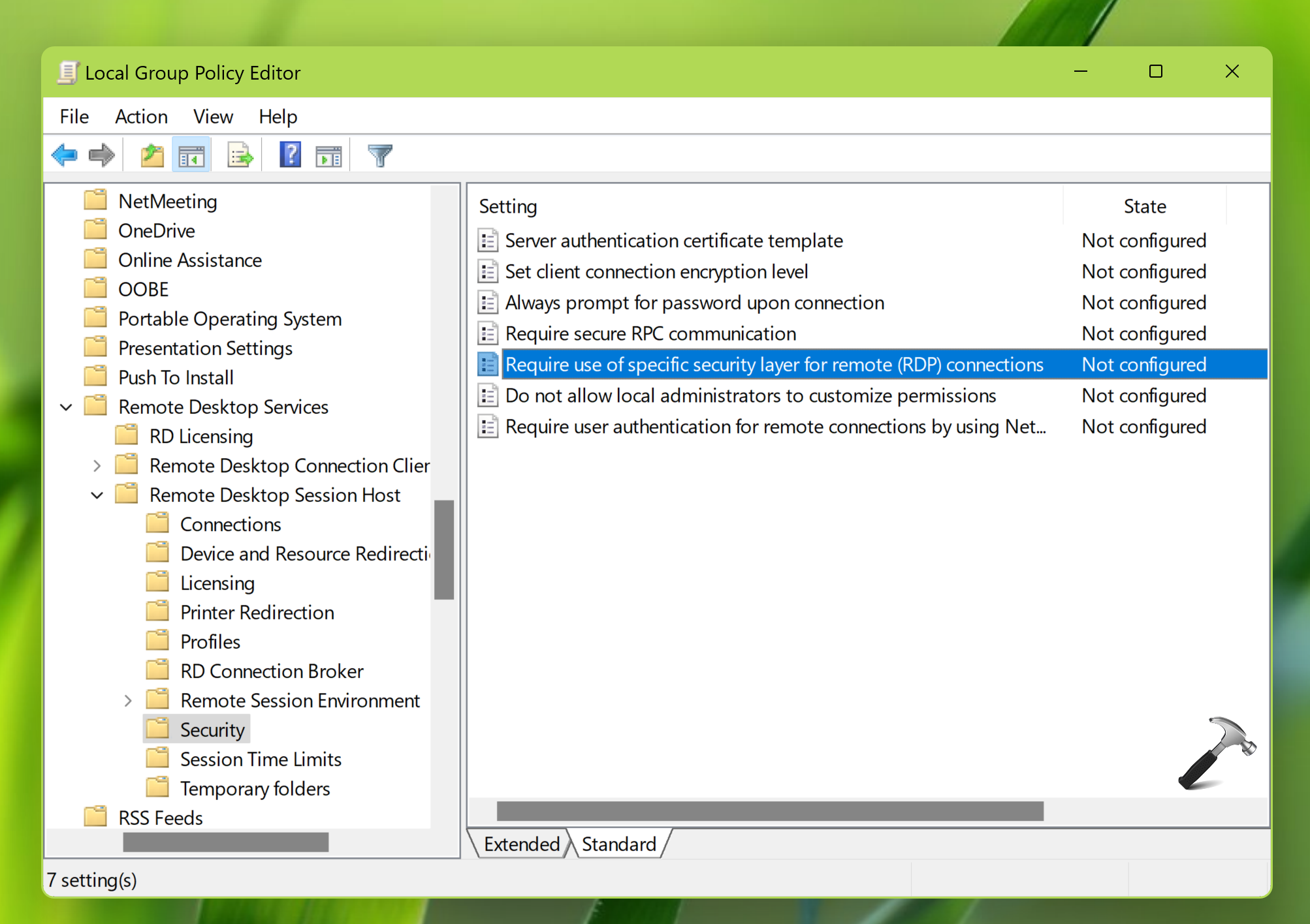 Computer Configuration > Administrative Templates > Windows Components > Remote Desktop Services > Remote Desktop Session Host > Security