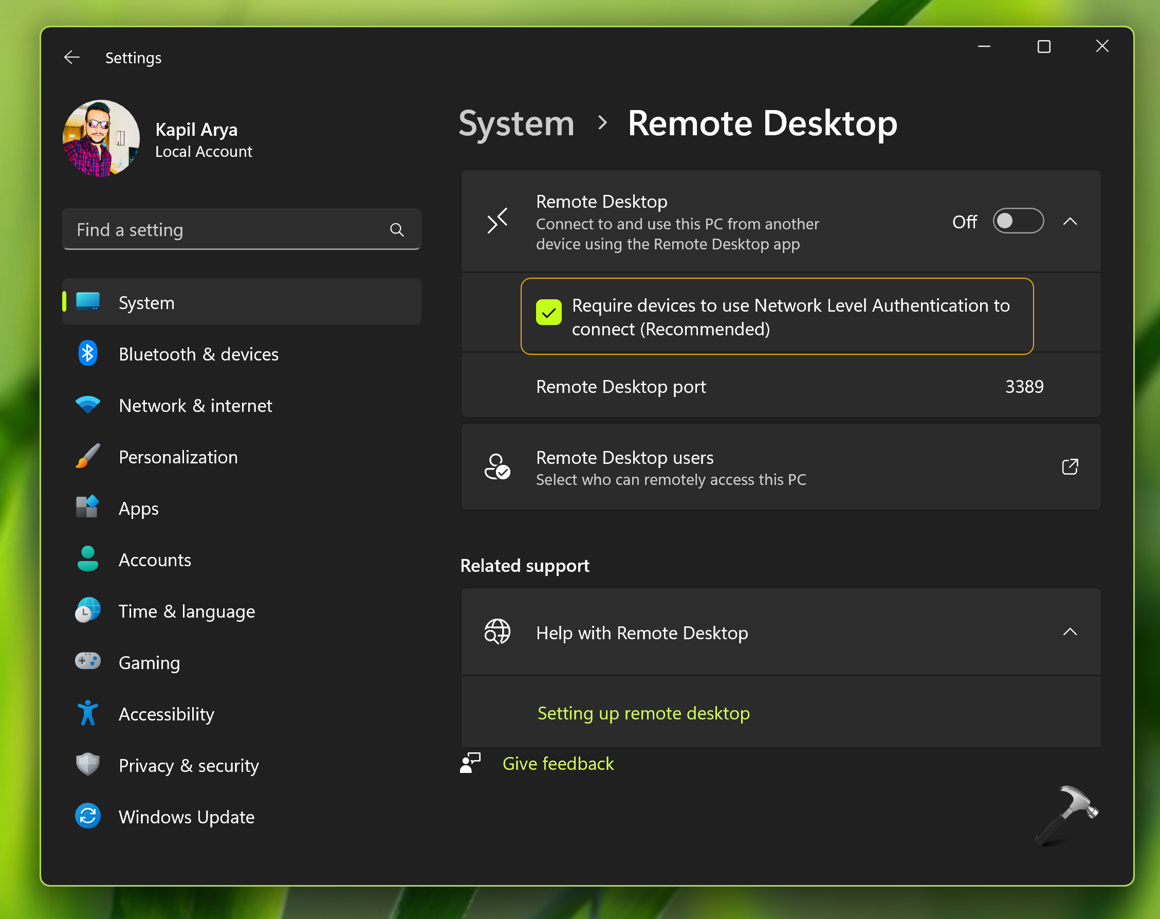 POPRAWKA 1 – Zmień ustawienia połączenia pulpitu zdalnego