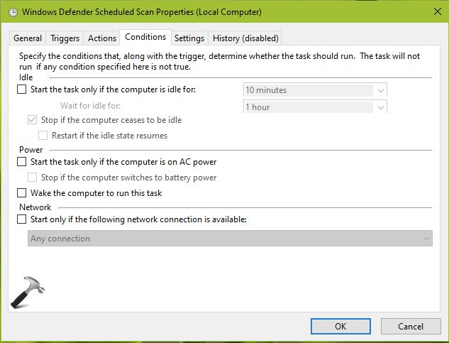 5.Kliknij zakładkę Warunki i odznacz wszystkie opcje.