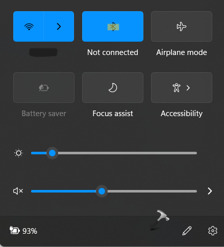 Aby włączyć funkcję Bluetooth, naciśnijOkna + Akarty razem na klawiaturze, aby je otworzyćSzybkie ustawienia. Teraz sprawdź, czy Bluetooth jest włączony.