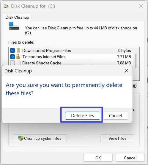 4. Kliknij „Usuń pliki”, aby potwierdzić.