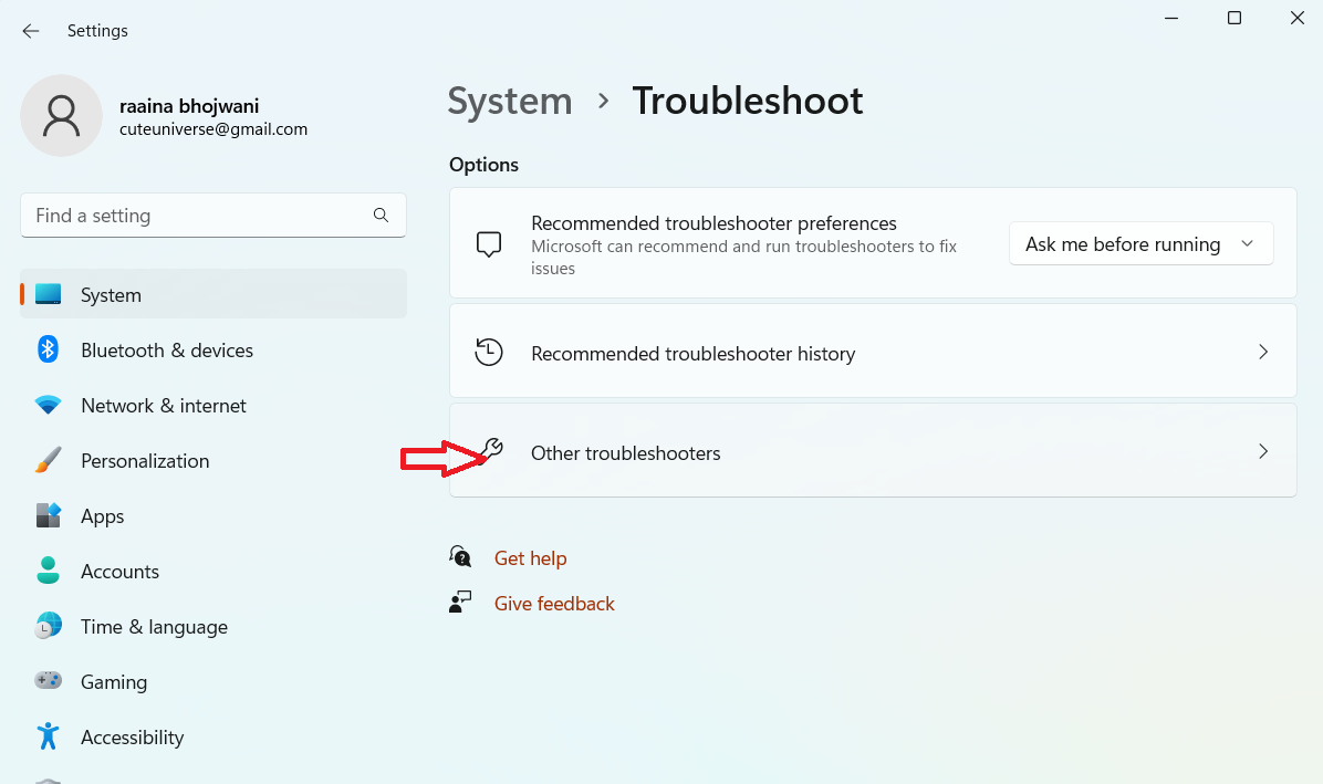 3. Kliknij Inne narzędzia do rozwiązywania problemów.
