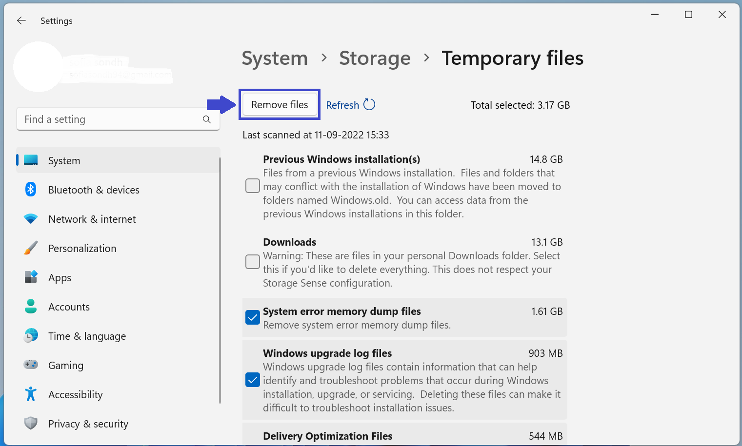3. Wybierz z podanej listy pliki, które chcesz usunąć, a następnie kliknij „Usuń pliki”.