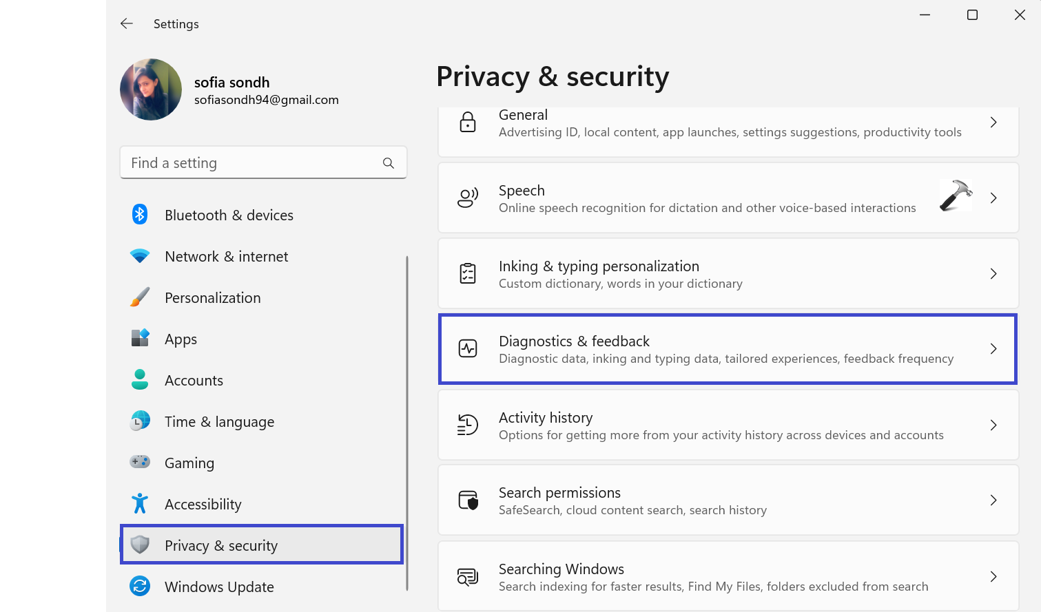 2. Przejdź do Prywatność i bezpieczeństwo => Diagnostyka i opinie.