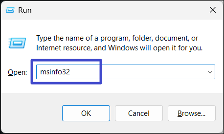 1. Naciśnij Windows + R, wpisz „msinfo32″w polu Uruchom i naciśnij „Wchodzić".