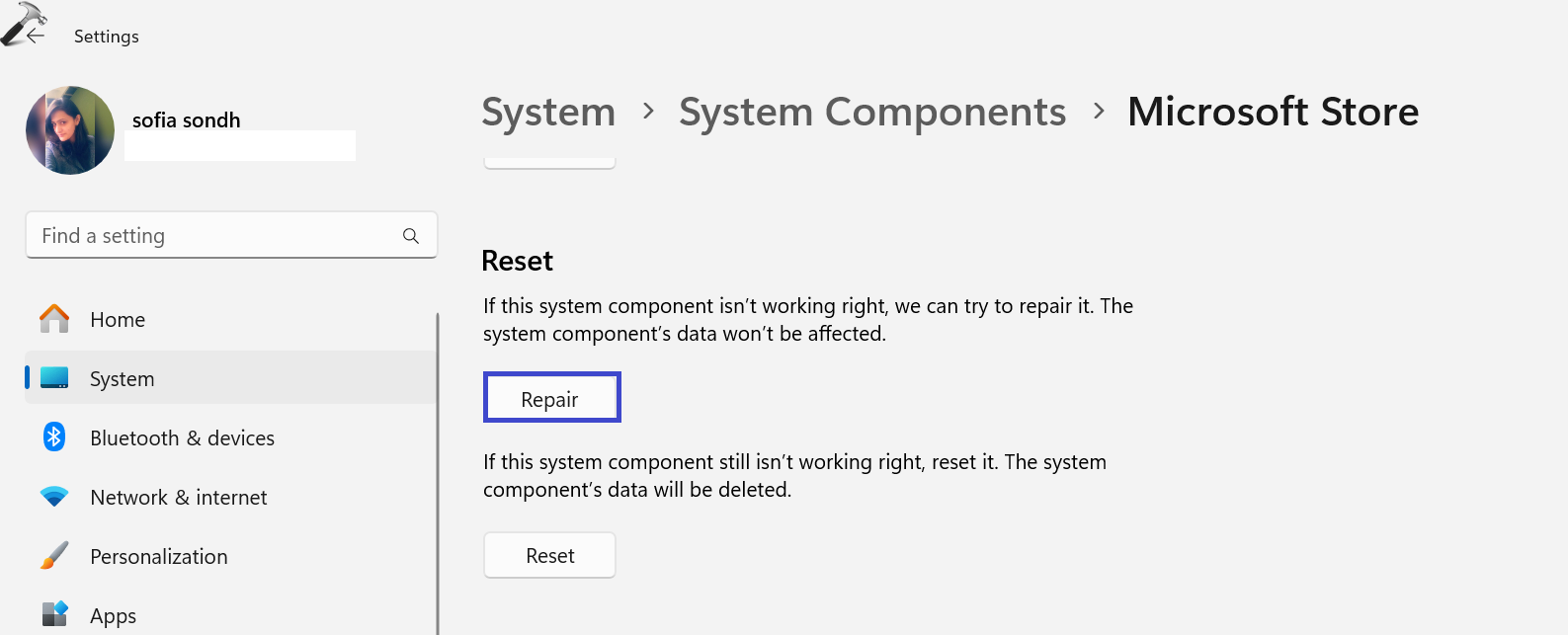 Poprawka 3: Napraw aplikacje Microsoft Store
