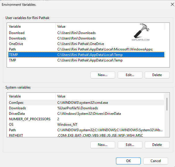 Krok 3-Teraz kliknij dwukrotnie TEMP w polu znajdującym się u góry.