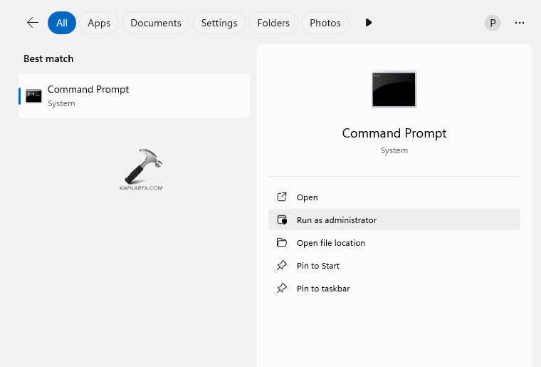 Krok 1-Przede wszystkim uruchom wiersz poleceń jako administrator.