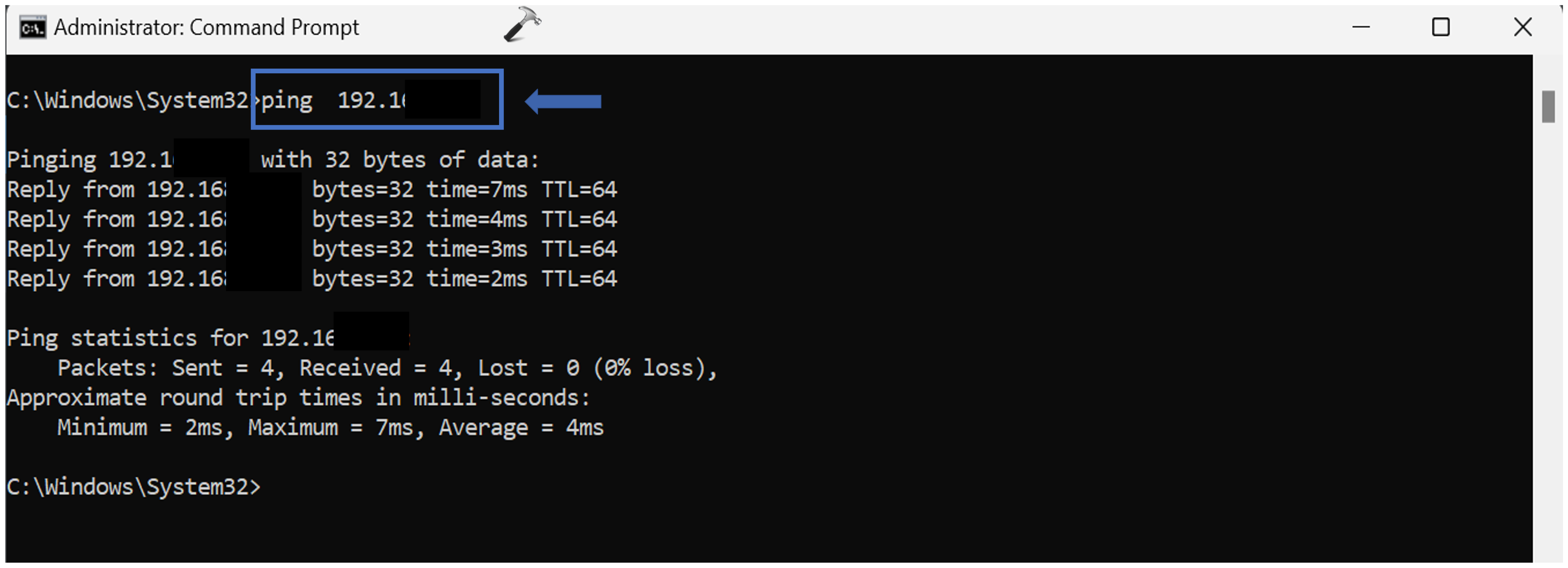 Aby wykonać test połączenia sieciowego za pomocą wiersza poleceń, wykonaj następujące kroki: