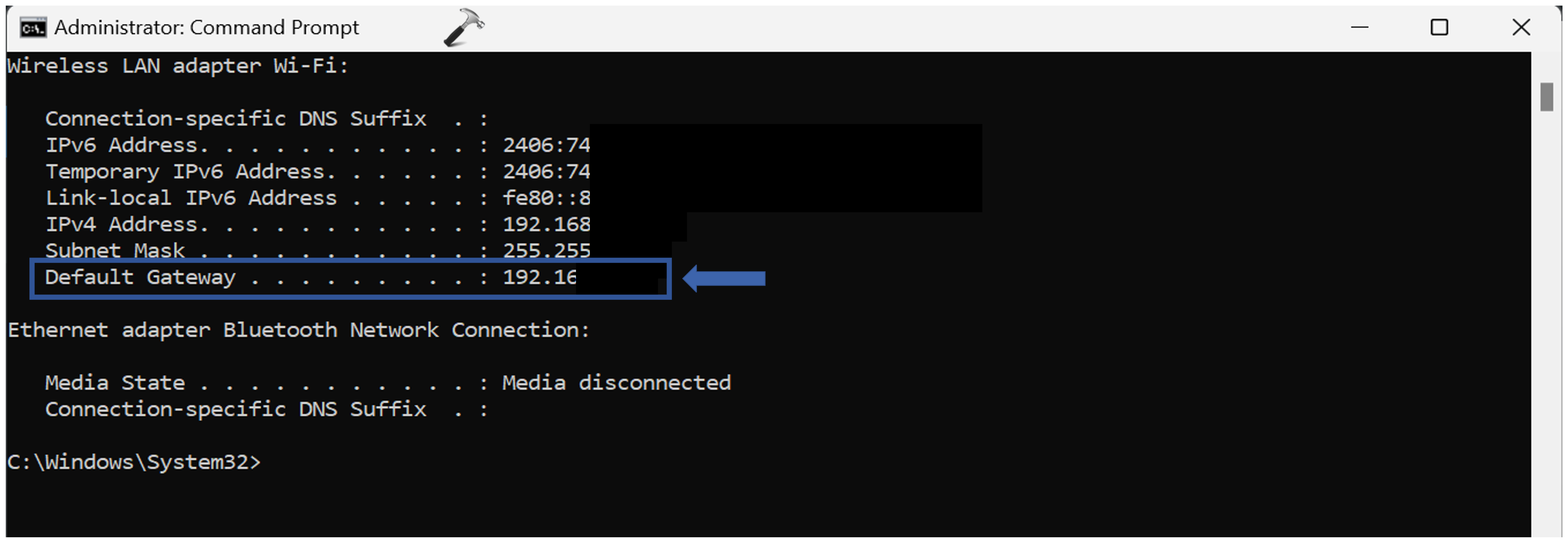 3. Pod „Adapter bezprzewodowej sieci LAN Wi-Fi„, skopiuj „Brama domyślna" adres.