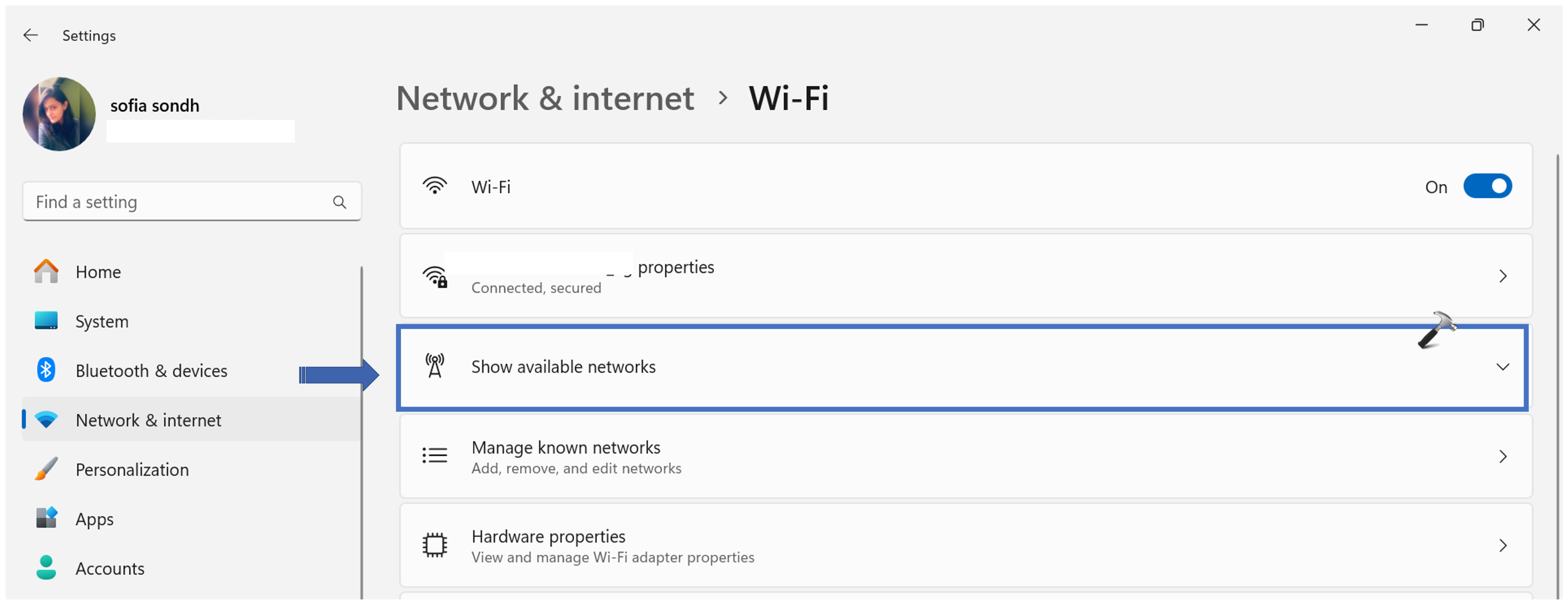 5. Teraz wróć do głównej strony Wi-Fi. Kliknij na „Pokaż dostępne sieciopcja.