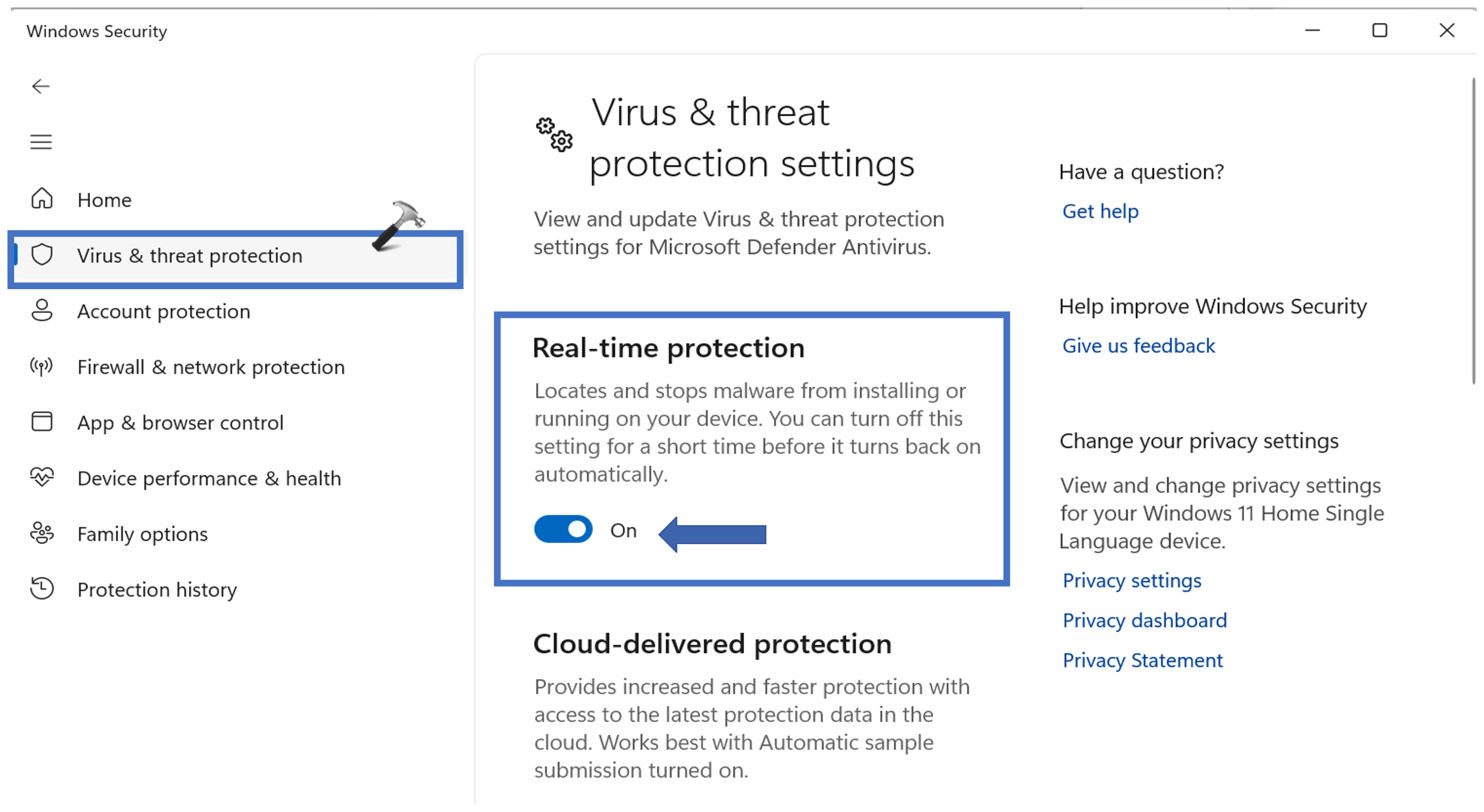 4. Tutaj wyłącz „Ochrona w czasie rzeczywistymopcja.