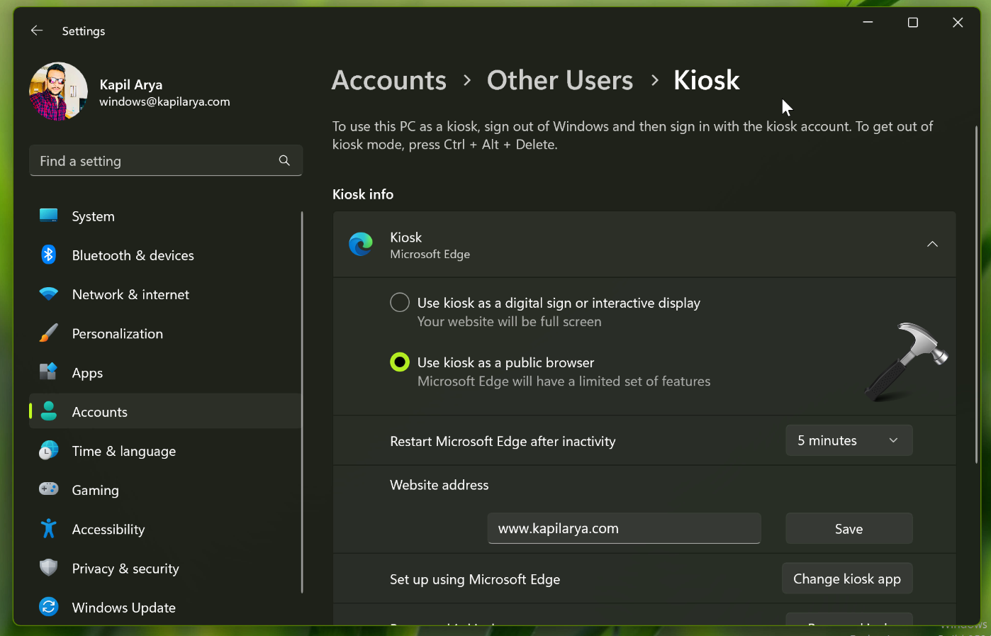 Użytkownik, którego dotknął ten błąd, napisał na forach Microsoftu: „Wygląda na to, że monit pojawia się za każdym razem, gdy aplikacja jest automatycznie uruchamiana ponownie w trybie kiosku”. Jeśli u Ciebie również występuje błąd, oto coś, co możesz zrobić.