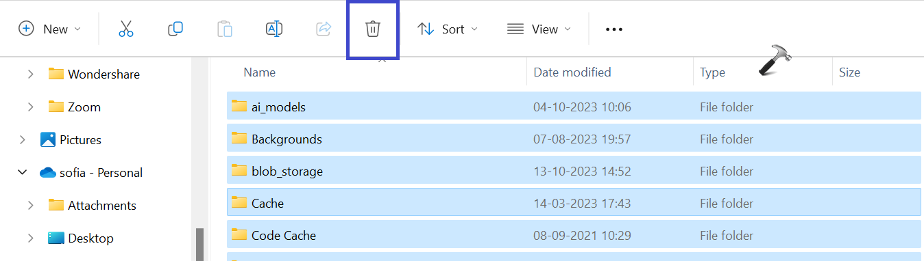 2. Teraz wybierz wszystkie pliki i kliknij „Usuwaćikona.