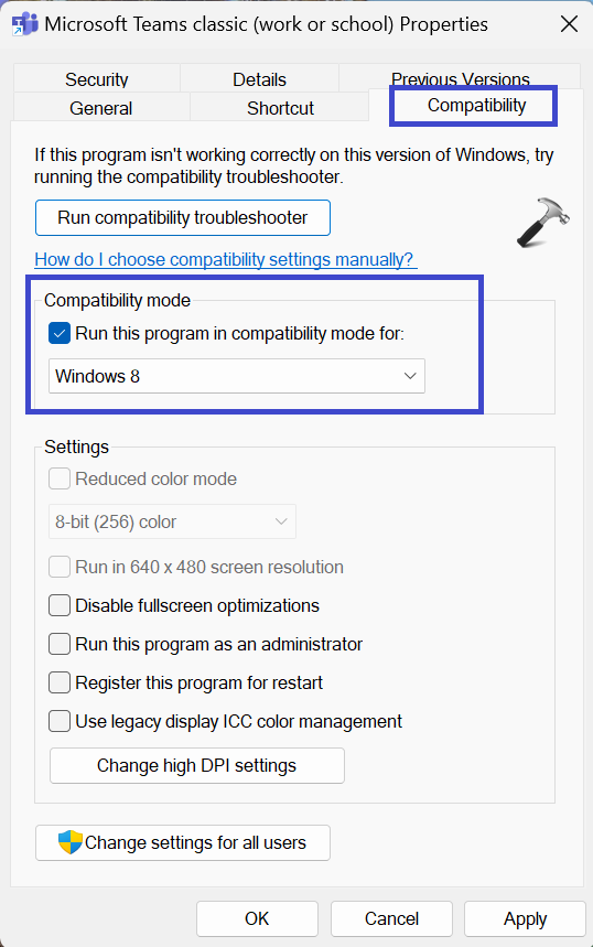 Rozwiązanie 4: Uruchom Microsoft Teams w trybie zgodności