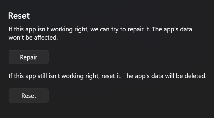 Poprawka 5 – napraw lub zresetuj aplikację Microsoft Teams
