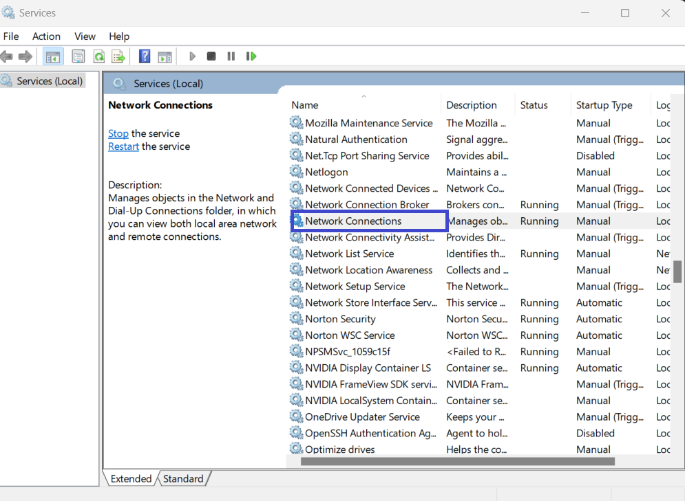 4. Wróć do okna Usługi i kliknij dwukrotnie Połączenia sieciowe.
